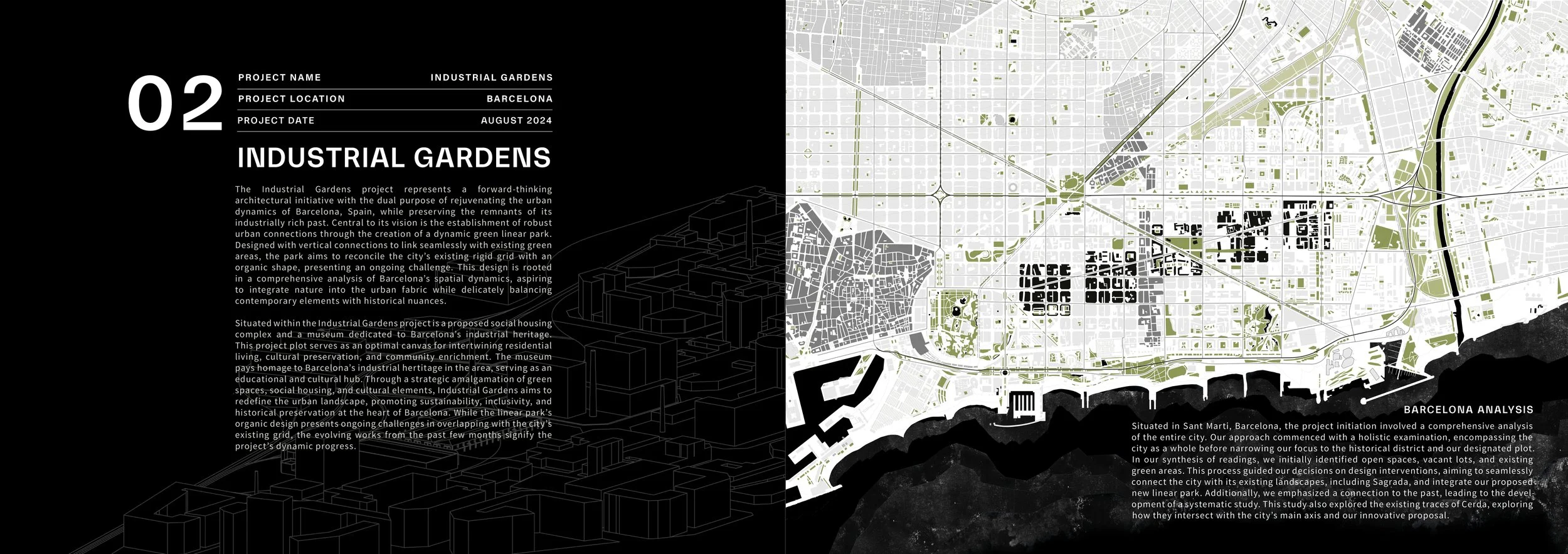 Reimagining Barcelona’s industrial fabric through a green linear park that integrates housing, culture, and urban connectivity. An urban strategy that reconnects fragmented landscapes through green infrastructure and mixed-use development.