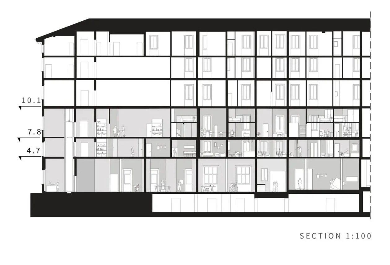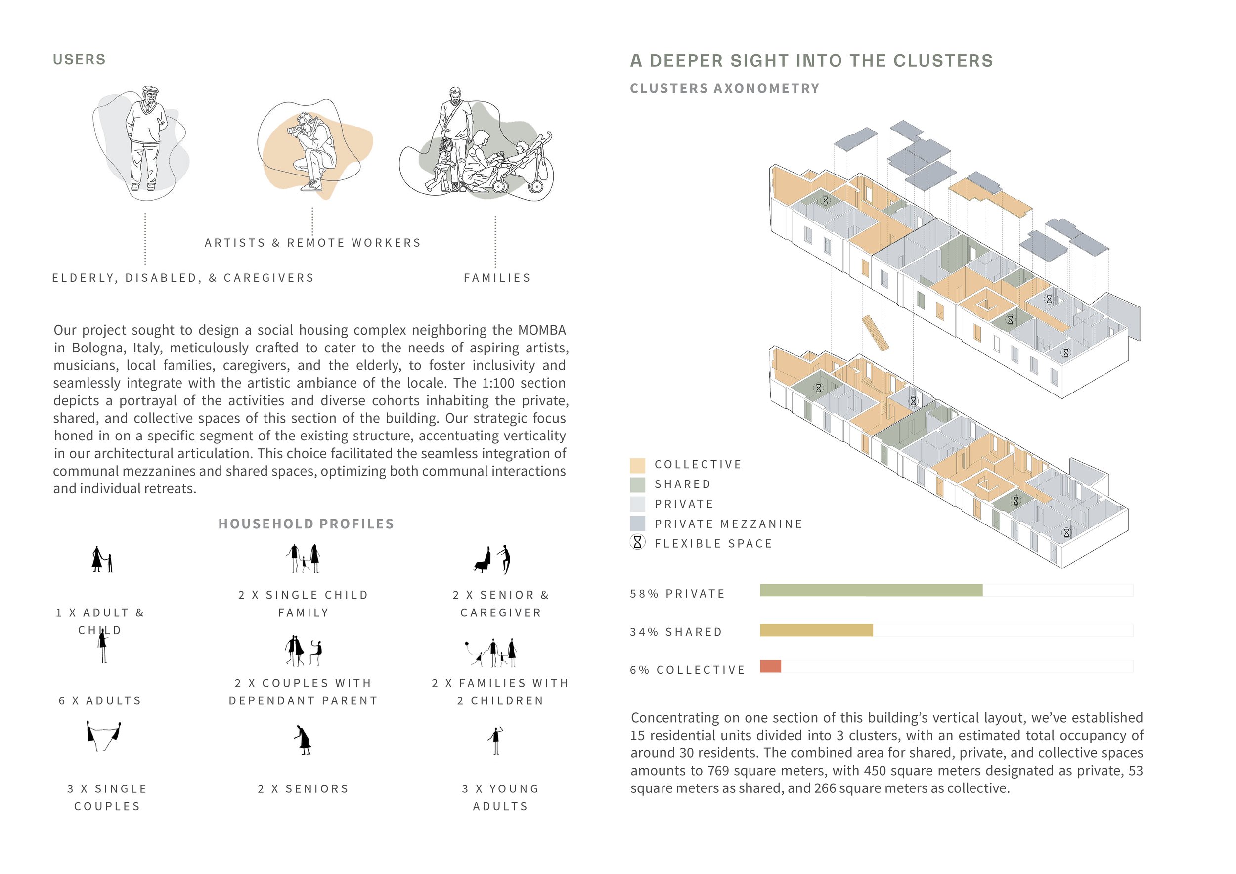 Collective housing designed for flexibility, proximity, and shared living in Bologna, Italy.